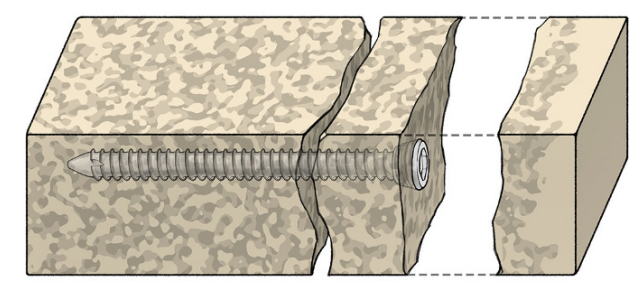 图12:遗落螺钉技术原理示意图 该技术通过将螺钉植入骨折部位以稳定小型骨碎片(如含软骨的承重骨片)。螺钉在后续手术过程中不可再取出,将永久性存留于骨组织内。